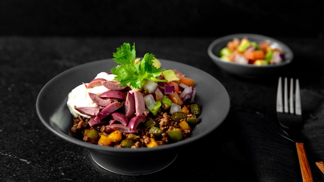 SPICED BEEF WITH AVOCADO & SALSA