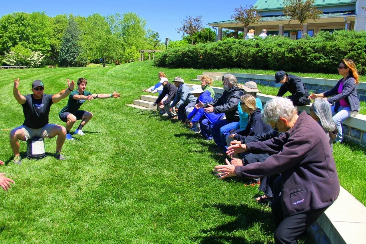Cool Down/Stretching: We finish each session with a cooldown of gentle stretching focusing on major muscle groups that helps to promote functional range of motion.